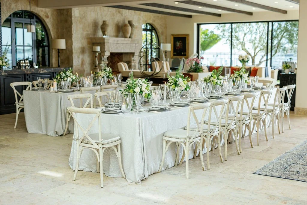 For an elevated aesthetic at a full-service venue — upgraded linens, charger plates, lounge furniture, candles, custom lighting, drapery, or specialty rentals — plan for $5,000 to $12,000+. For blank-slate venues requiring tables, chairs, flatware, glassware, and full design build-out, $15,000 to $25,000+ is realistic.
